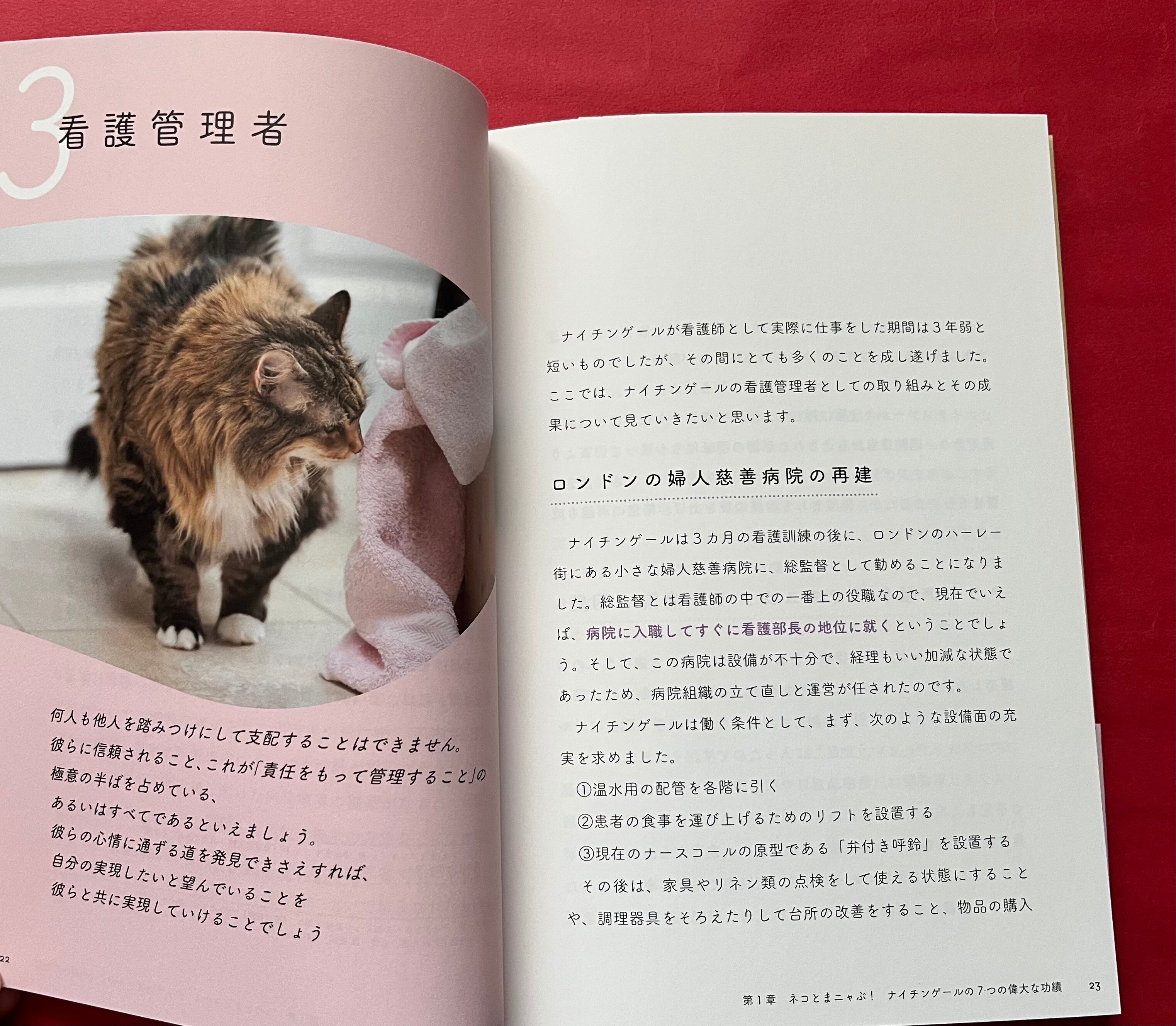 なんとびっくり! 『看護覚え書』をはじめ、ナイチンゲールの名言を、たくさんのネコ写真を交えてわかりやすく解説した異色本。癒やされながら「看護の本質」が自然に身につきます(^-^)
